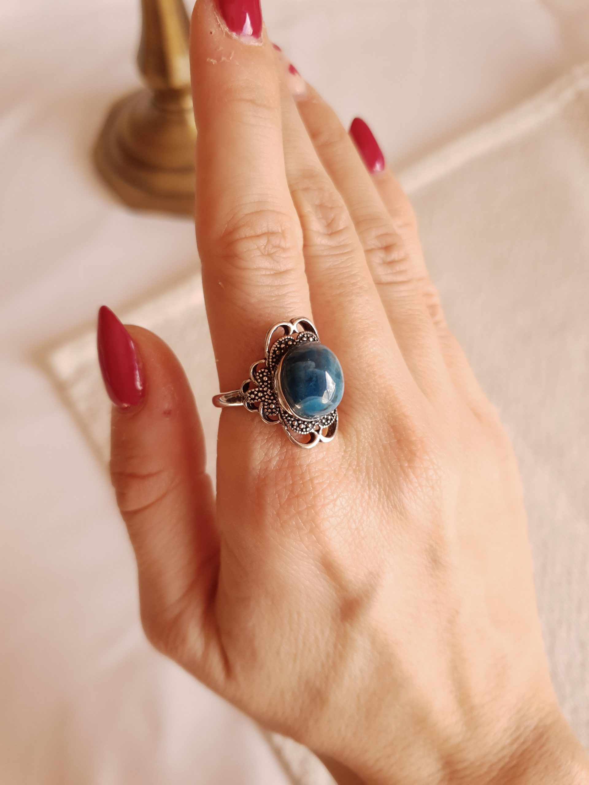 Os anéis representados na fotografia são exemplares. Sendo anéis de pedra natural, podem variar a cor, tamanho e formato.