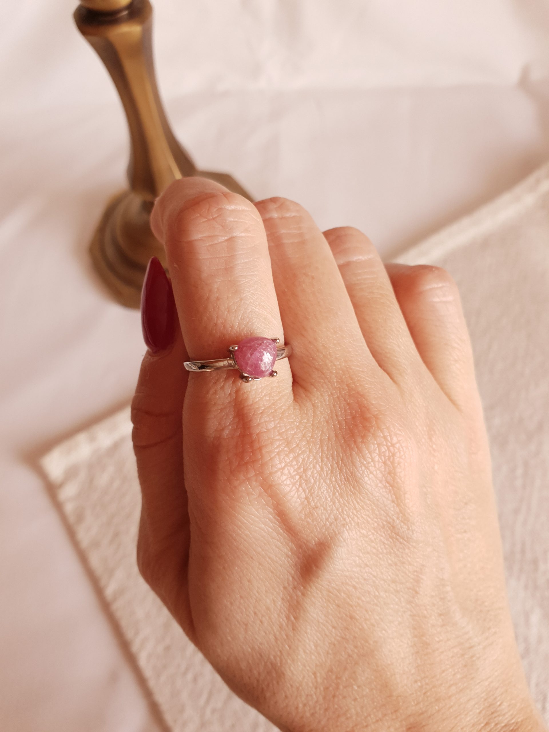 Os anéis representados na fotografia são exemplares. Sendo anéis de pedra natural, podem variar a cor, tamanho e formato.