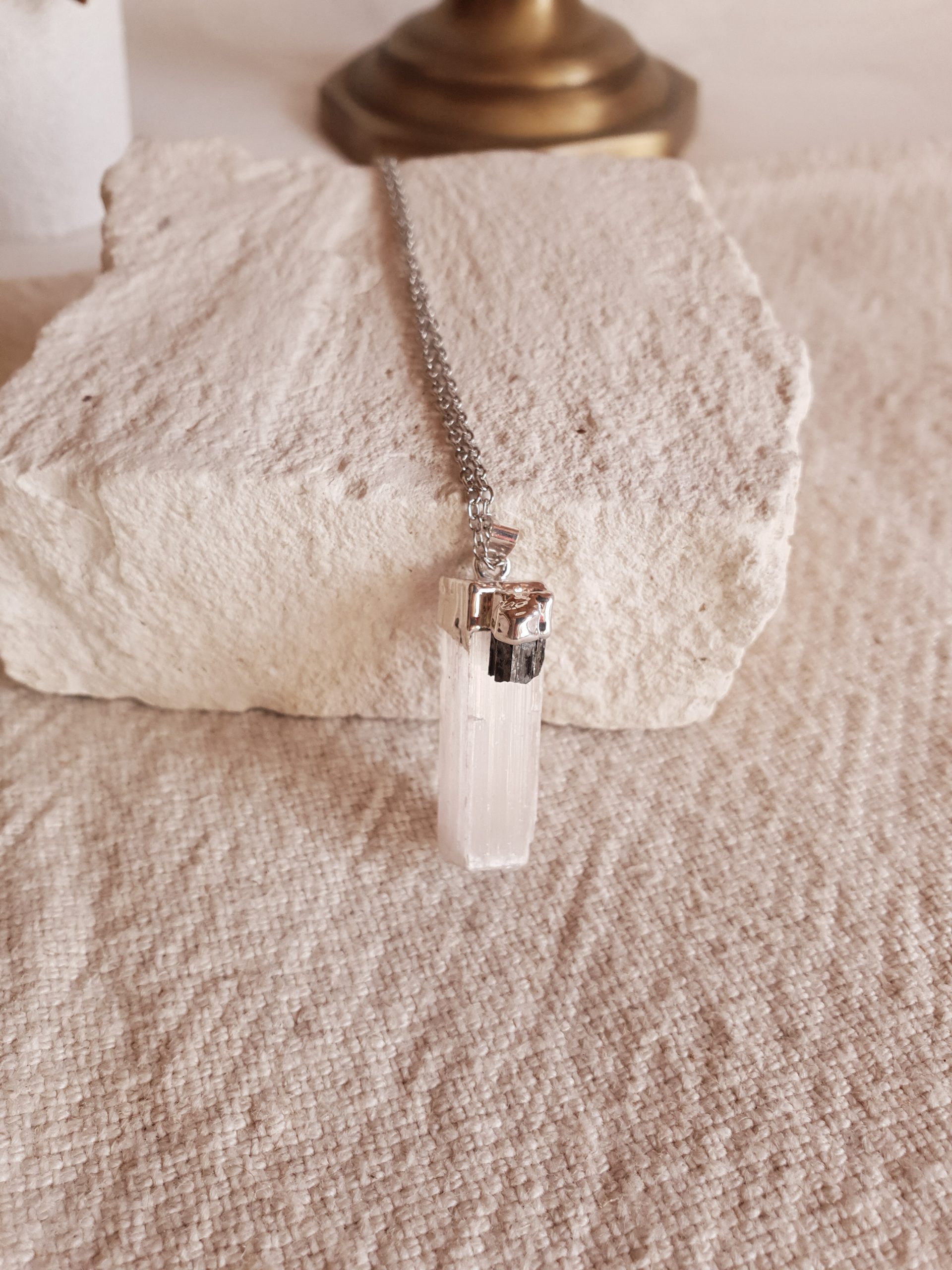 Colar de Selenite e Turmalina NegraColar de Selenite e Turmalina Negra