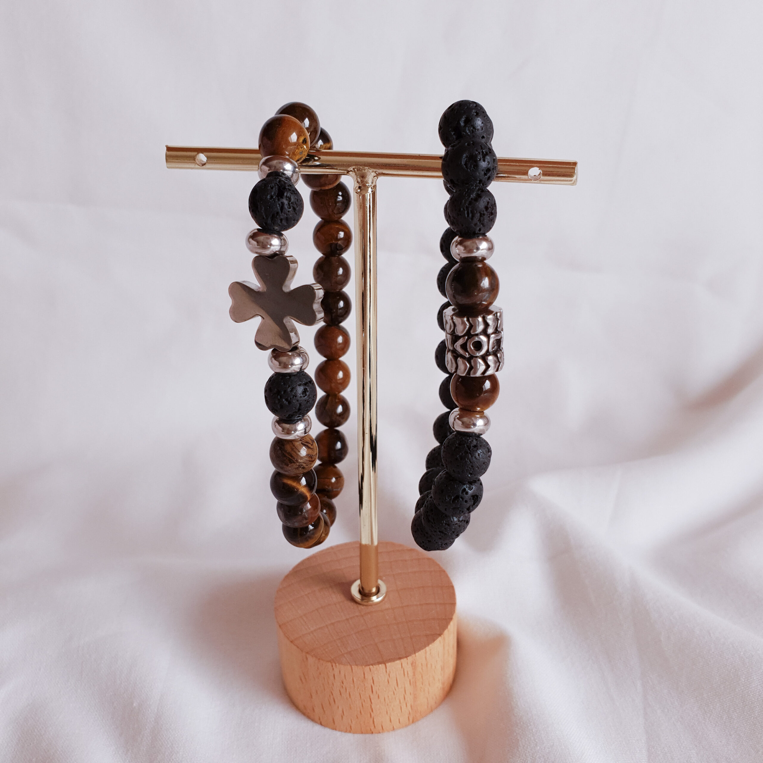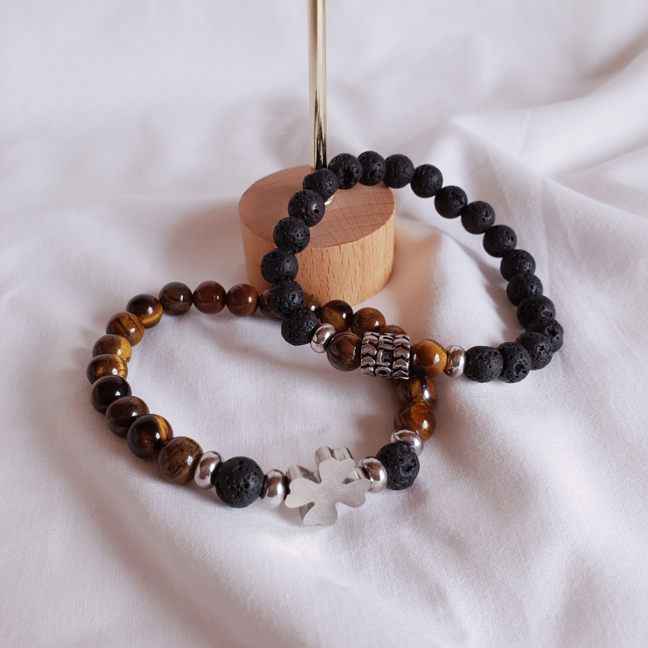 Conjunto de Pulseiras de Pedra Vulcânica com Olho de Tigre