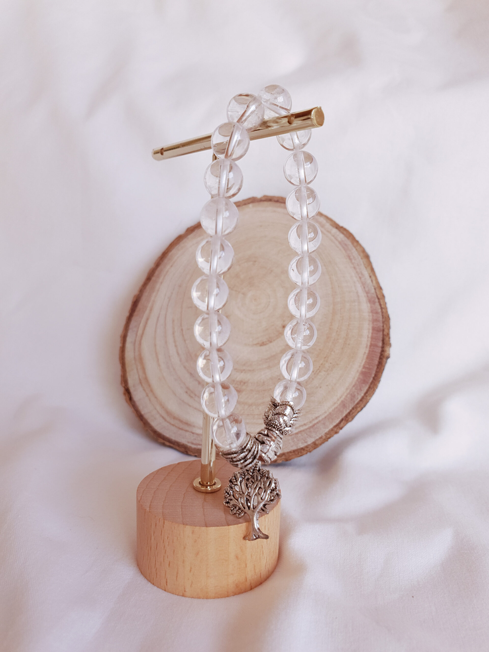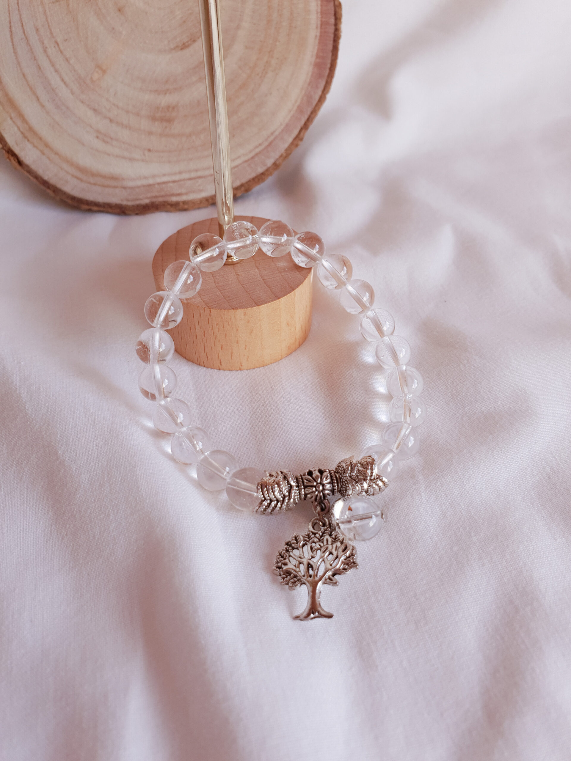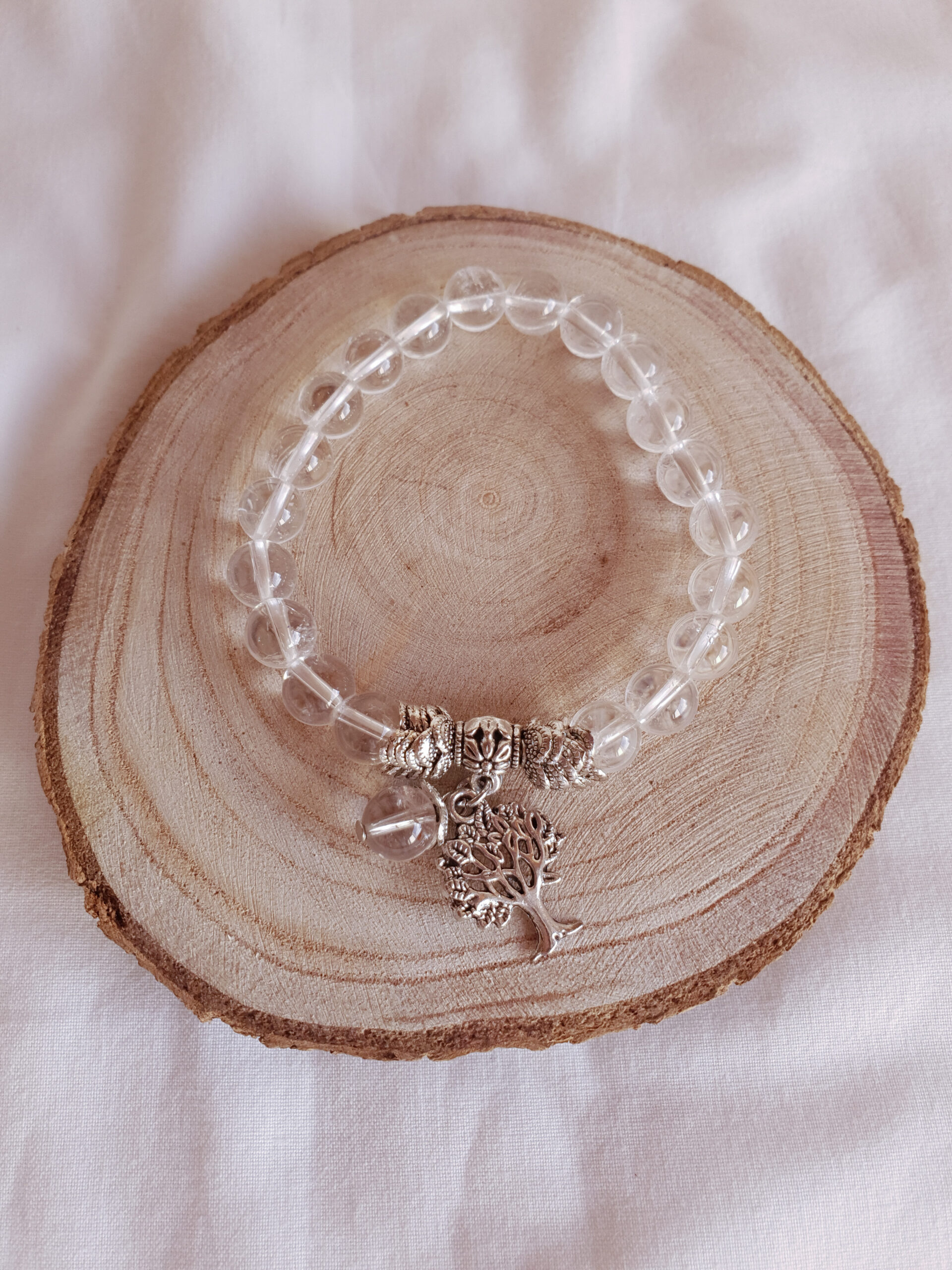 Pulseira de Quartzo com Pendente Árvore da Vida