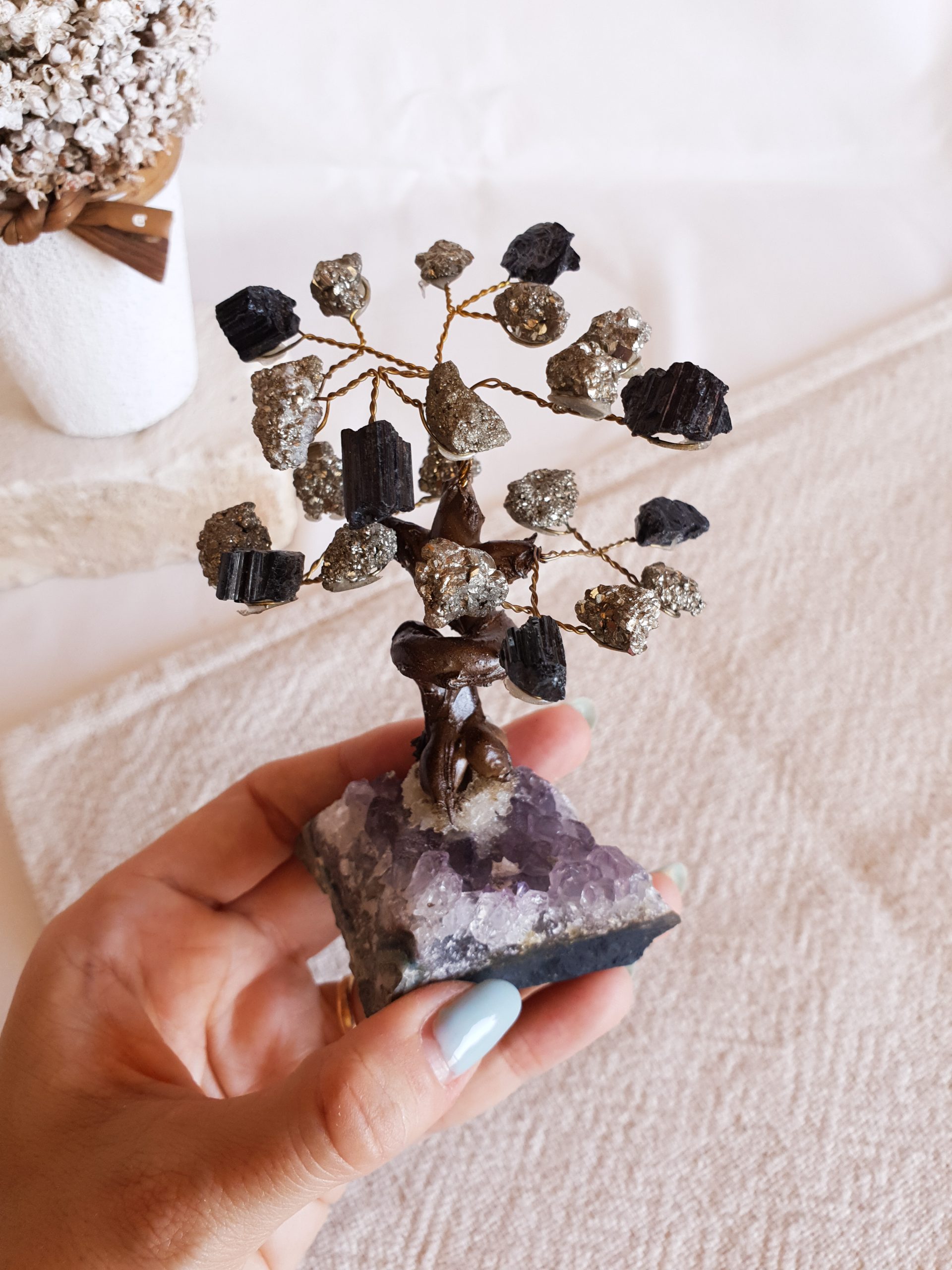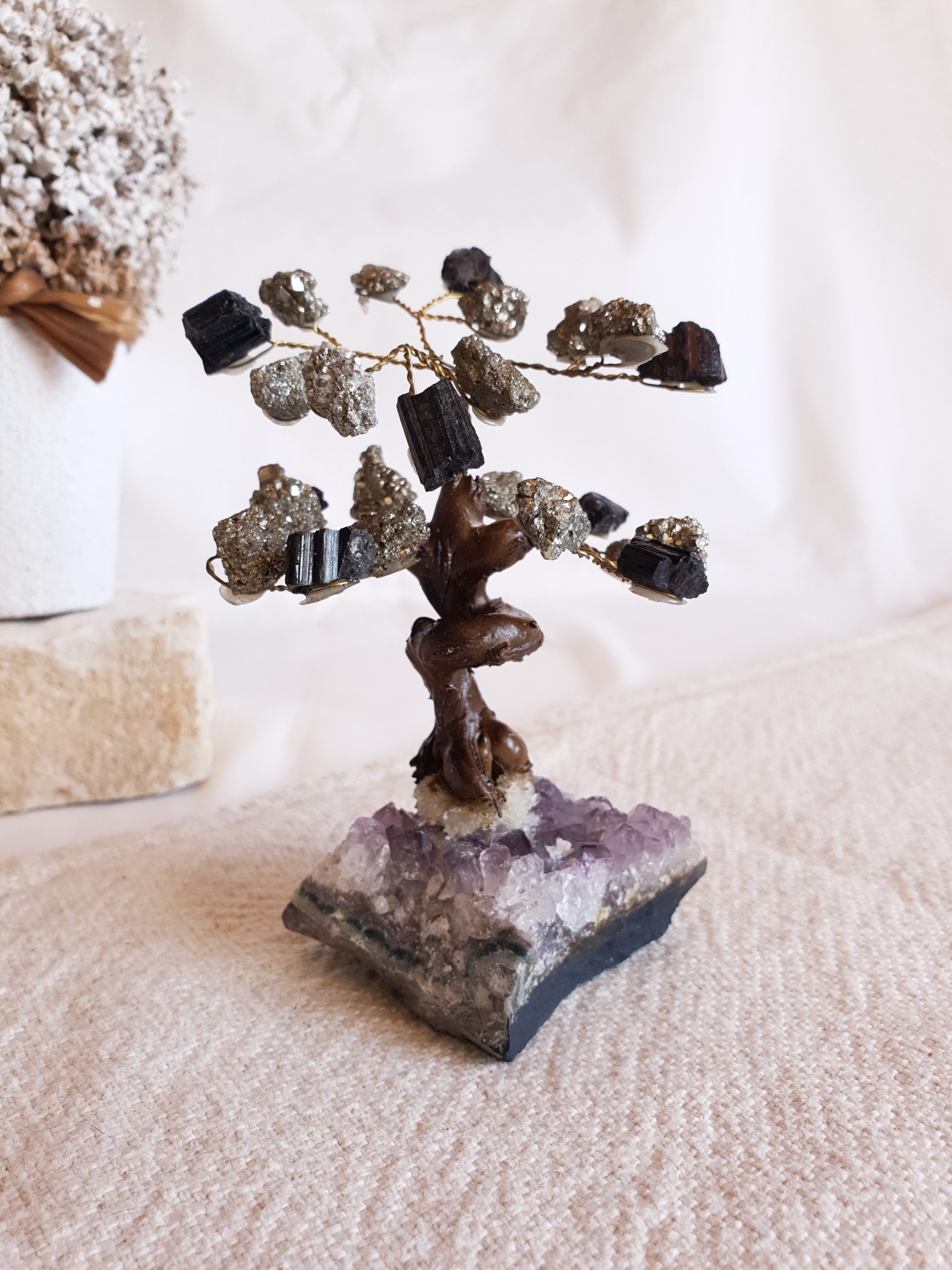 Árvore de Pirite e Turmalina em Base de Ametista