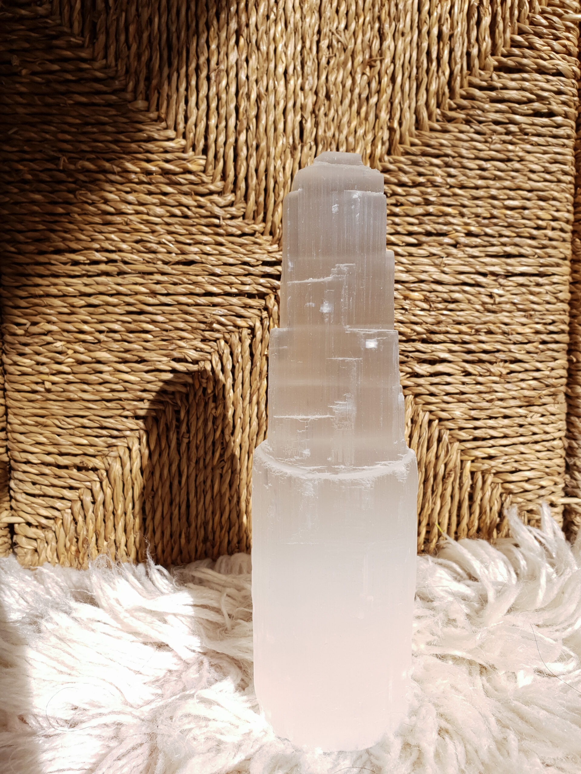 Além dos benefícios espirituais, a nossa Selenite acrescenta uma elegância intemporal à tua decoração. Em virtude de ter uma forma única e um brilho translúcido, estas torres são verdadeiramente cativantes, tornando-as numa peça central em qualquer espaço.