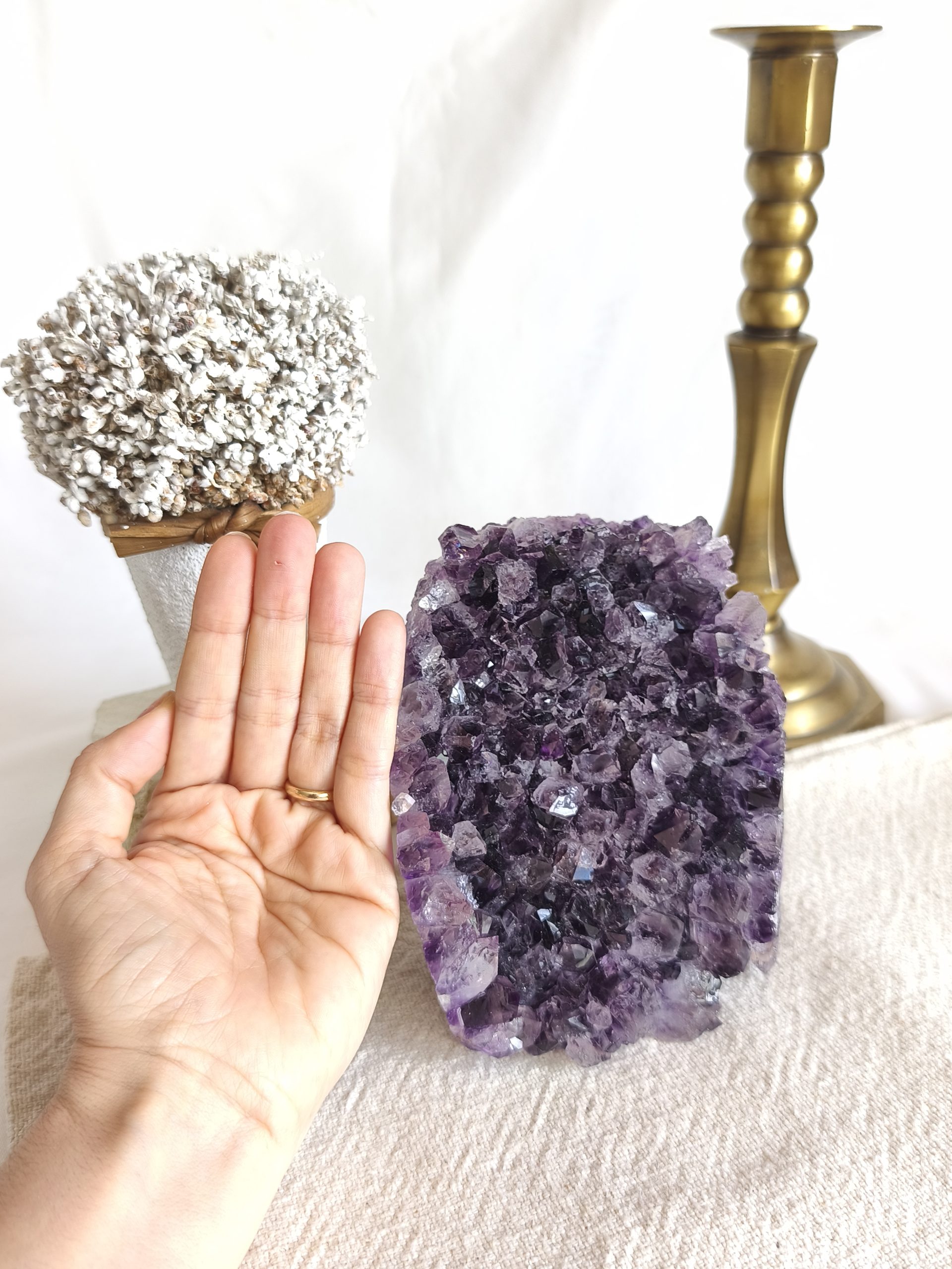 Portanto, além dos seus benefícios terapêuticos, a Drusa de Ametista é uma peça de decoração encantadora. O seu brilho natural e tons roxos tornam-na uma adição elegante a qualquer ambiente. Coloca-a na tua sala de estar, quarto ou escritório para adicionar um toque de sofisticação e energia positiva.