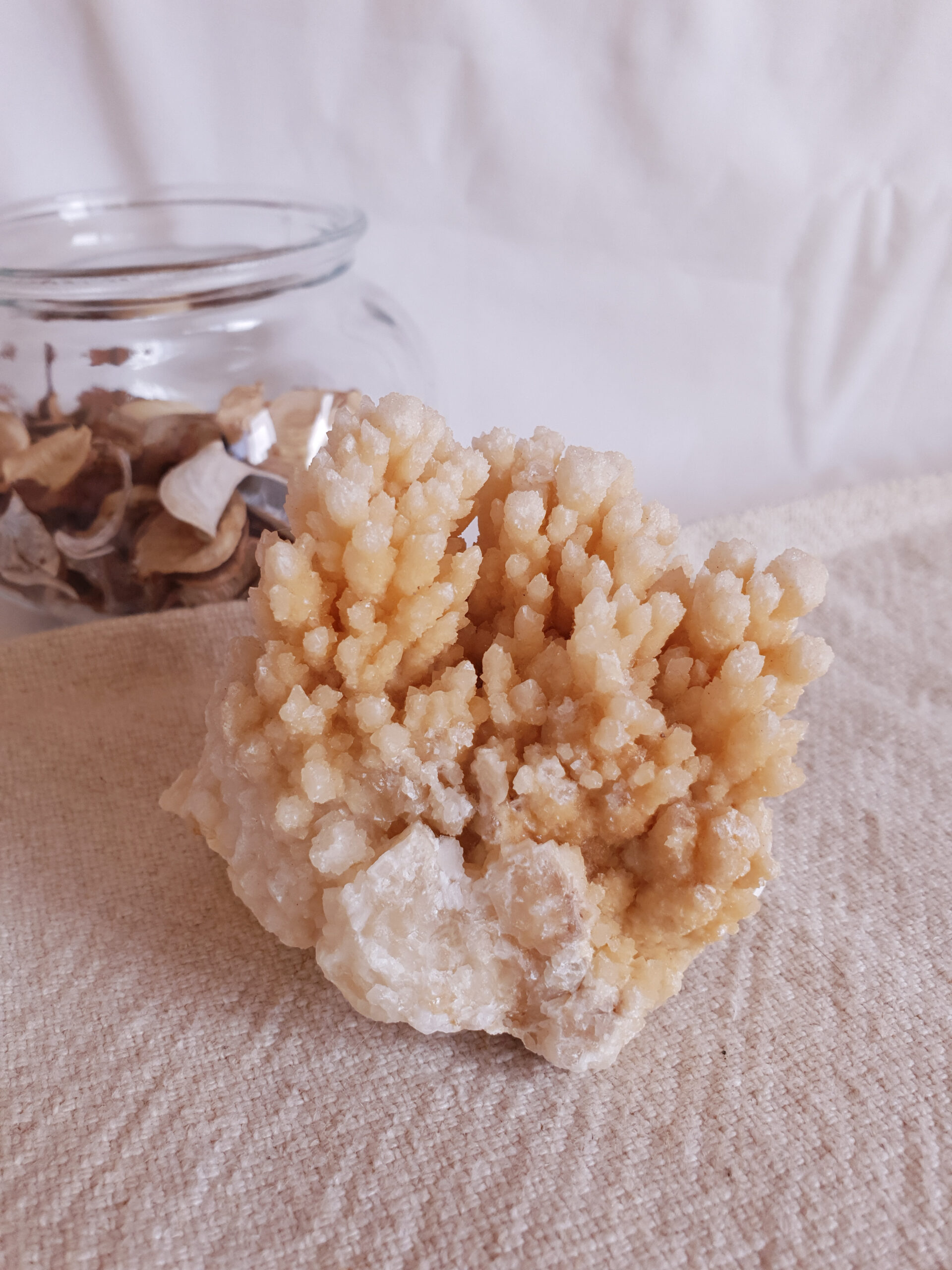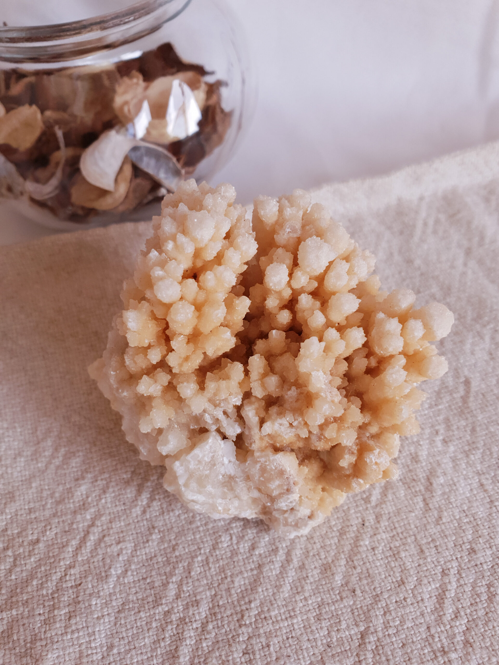Drusa de Aragonite Coraloide e CalciteDrusa de Aragonite Coraloide e Calcite